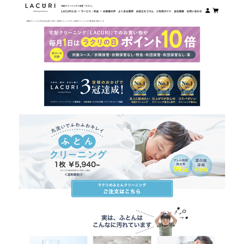 防ダニや抗菌加工をしてくれるサービスもあり、アレルギーや喘息をお持ちの方にも安心です。自分ではできないところまで徹底的にケアしてくれる点が魅力